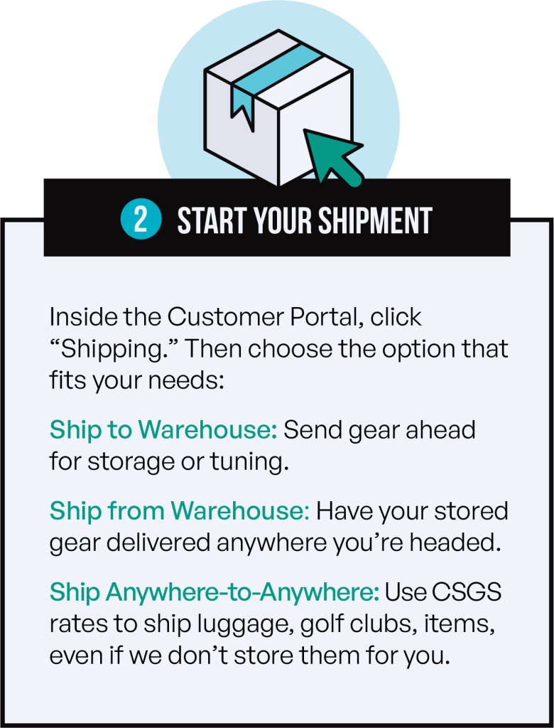 Access your customer portal to start a shipment, manage your labels, and track your gear.