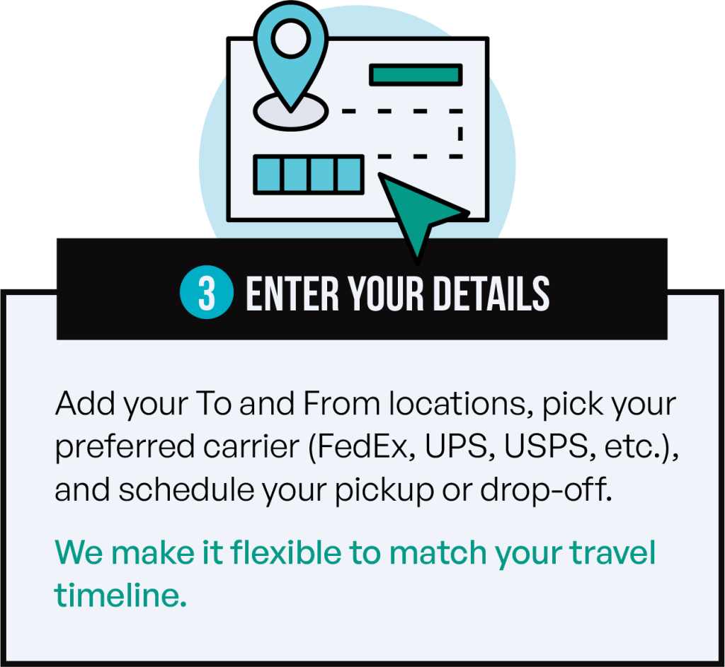 Schedule a pickup from your home, hotel, or rental—or drop off at a carrier location.